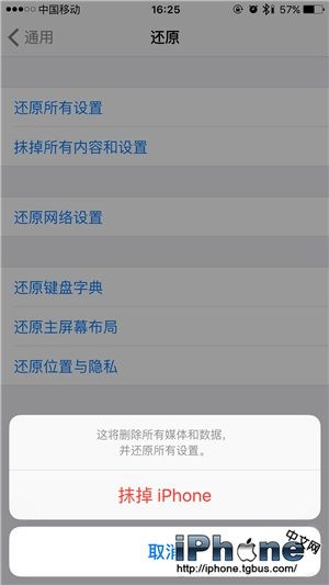④輸入密碼後,點擊【抹掉iPhone】。即可還原所有設置與內容。