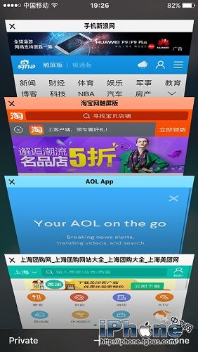 玩法二:Safari 浏覽器打開很多標簽時,我們可以在標簽預覽界面輕觸某一想要看的標簽,使之微微上浮,這時重按(Peek)這個標簽,會發現標簽放大預覽了,此時若再次重按(Pop),則是完全轉到此標簽下。