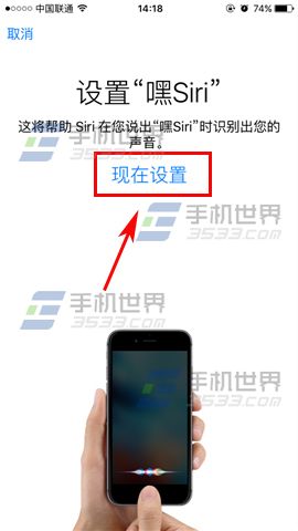 2)接著把【允許嘿Siri】那欄的橢圓往右拉打開即可,然後點擊【現在設置】。(如下圖)
