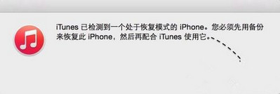 2.隨後,電腦上的iTunes軟件會提示,檢測到一個處於恢復模式的iPhone設備。點擊【好】