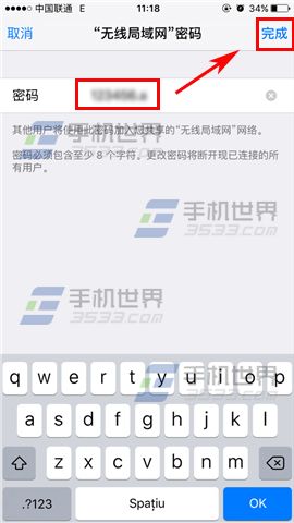 2)輸入新密碼後點擊右上角的【完成】即可設置保存,此時只要朋友打開WiFi並找到你的無線網連接輸入密碼即可上網了。(如下圖)