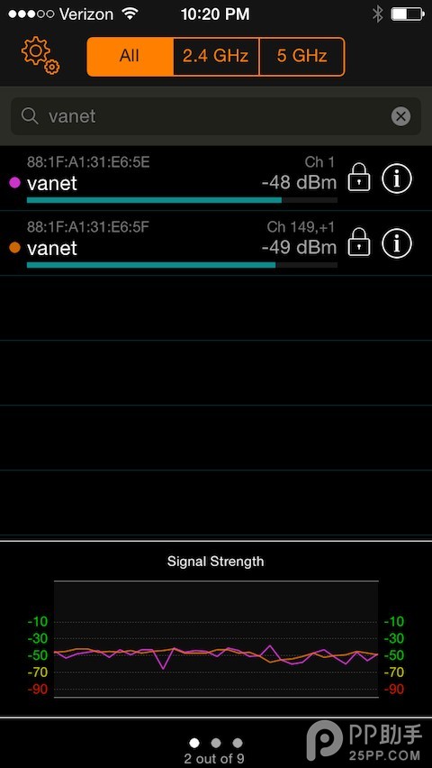 WiFi Explorer是一款非常強大的wifi網絡掃描查看工具,它可以掃描出周邊所有2.4ghz、5ghz網絡並以列表形式顯示到一起供您詳細查看。
