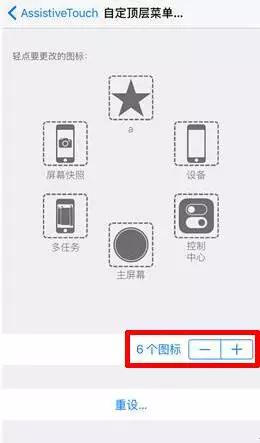打開【Assistive Touch】-點擊【自定頂層菜單】功能,即可按照自己需求自定義想要的快捷鍵至小圓點頂層菜單,點擊下方面的“+”號,可以增加自定義的快捷鍵最多至8個,非常方便。