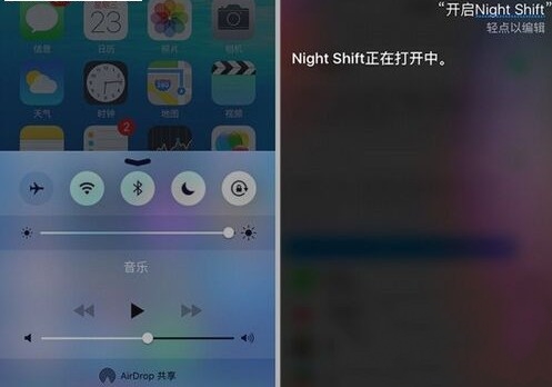 這裡補充兩點小技巧:第一,在屏幕底部上滑呼出的控制中心,支持一鍵開啟;第二,當設備處於‘低電量模式’時,Night Shift是無法開啟的,但你能通過Siri讓它跳過檢測直接開啟。