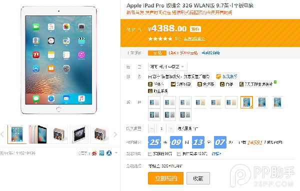 9.7寸iPad Pro 32GB 4388元、128GB 5388元、256GB 6388元,同樣有四種顏色。