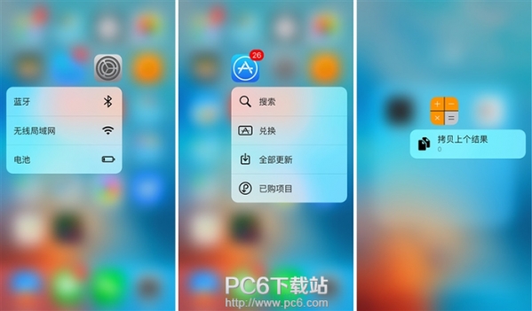 iOS 9.3中有更多的原生應用加入了3D Touch功能,除健康外,設置、AppStore、計算器都加入了3D Touch,比如設置可以快速進入電池、WiFi設置,計算器加入了拷貝上個結果,還算蠻實用。