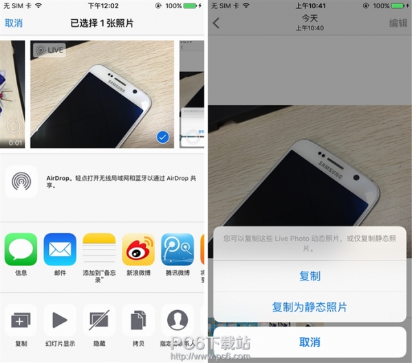 Live Photo則加入了可以選擇性復制【Live Photo】和【靜態照片】兩種模式,比較貼心的小功能。