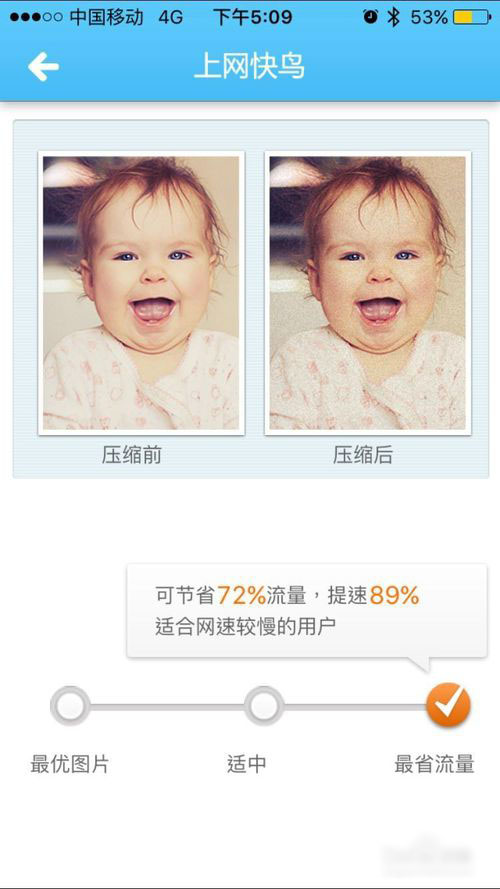 3.點擊設置-壓縮級別-最省流量可以節約72%提高加載速度
