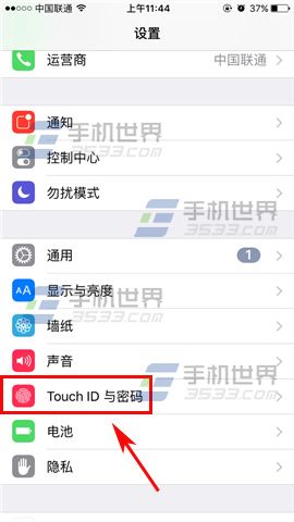 1)首先我們先打開【設置】,然後找到【Touch ID與密碼】,打開後輸入密碼點擊右上角的【完成】。(如下圖)