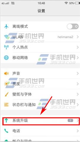 1)首先我們先打開【設置】,然後找到【系統升級】。(如下圖)