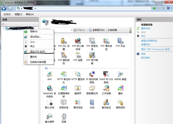 3、點擊左邊那一欄,右鍵-添加FTP站點。FTP 站點名稱可以隨便起,物理路徑則選擇你想要在iPhone/iPad上訪問的磁盤或文件夾。