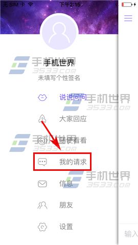 1)打開小靈靈進入應用,接著點擊左上角【三】,在導航欄點擊【我的請求】。(如下圖)