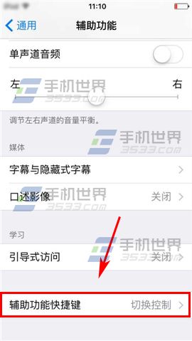 5)返回輔助功能界面,點擊【輔助功能快捷鍵】,點擊【切換控制】去除勾選即可。(如下圖)