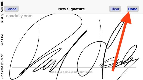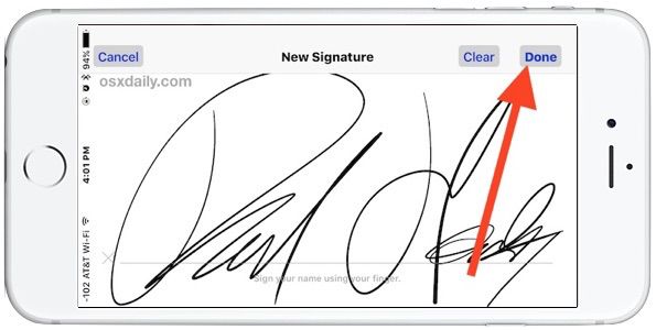 3.然後就用你的手指在屏幕上寫下你的大名吧,接著點擊“完成”