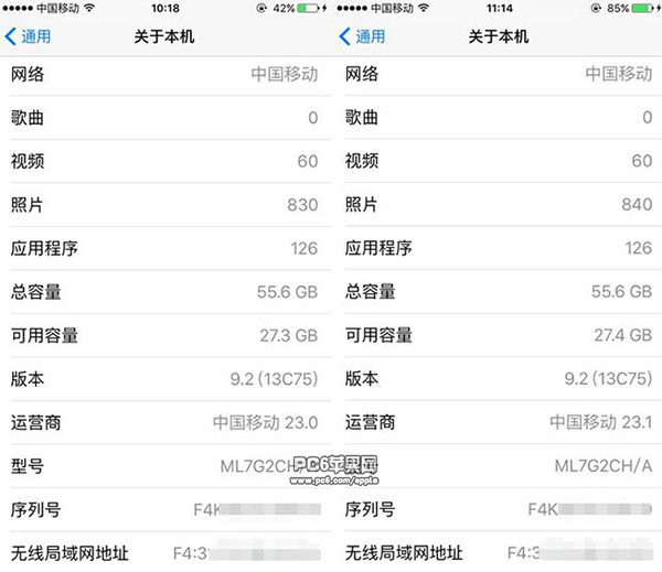 2.將國行iPhone 6s升級至最新的iOS 9.2系統後,打開“設置”-->“通用”-->“關於本機”,點擊“名稱”後手機上會自動彈出“是否更新運營商設置”的請求,點擊“更新”後將瞬間進行更新。更新完畢後“運營商”一欄的信息由之前的“23.0”變為“23.1”。