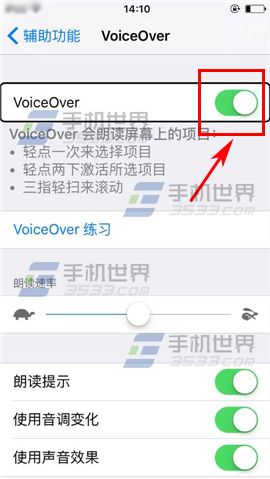 3)最後,雙擊【VoiceOver】右邊滑塊即可。(如下圖)