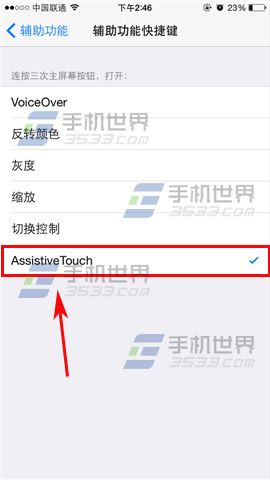 2)打開輔助功能後我們再點擊【輔助功能快捷鍵】,打開後最後再點擊【AssistiveTouch】打上勾就可以了。(如下圖)