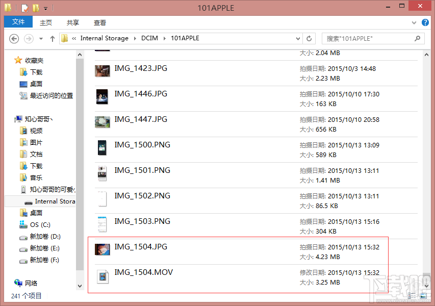 1.利用數據線將 iPhone 6s/6s Plus 跟電腦連接起來,然後在 iPhoneInternal StorageDCIM101APPLE(不一定是101,選擇序數最大的那個文件夾即可)的路徑下找到自己拍攝的 Live Photo 照片,然後將 MOV 視頻那一部分復制到桌面上。