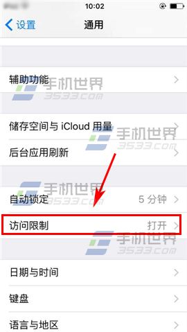 2)接著點擊【訪問限制】,進入後輸入【鎖屏密碼】。(如下圖)