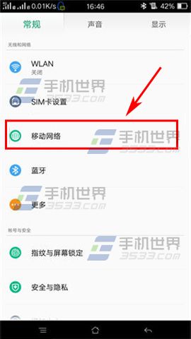 1)點擊【設置】,進入後在常規一欄點擊【移動網絡】。(如下圖)