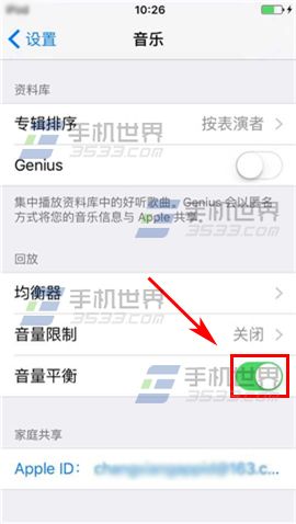 點擊設置進入,再點選【音樂】,接到打開【音量平衡】右邊開關即可。(如下圖)