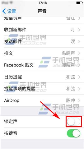 在設置界面點擊【聲音】進入,下滑到底部關閉【鎖定聲】右邊滑塊即可。(如下圖)