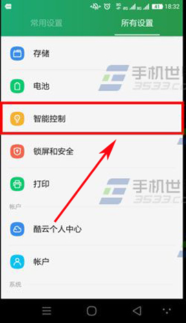 1)首先我們先打開【設置】,然後點到【所有設置】那裡,找到【智能控制】,打開後點擊【動作和屏幕】。(如下圖)