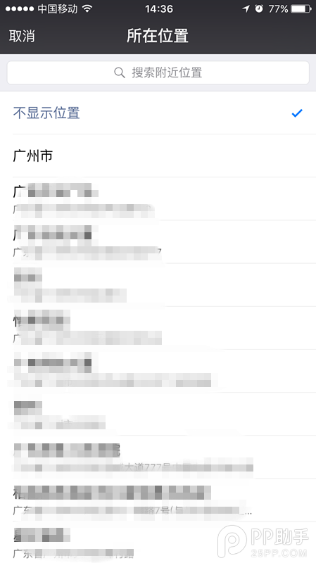 4、選中位置之後發布,就能在朋友圈中看到來自iPhone6s玫瑰金客戶端。(如果你想弄成其他顏色或iPhone6s Plus等版本,只要重新創建一個位置就可以了)