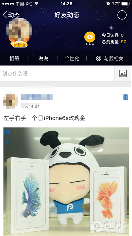 QQ空間顯示來自iPhone6s玫瑰金方法: