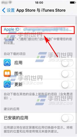 1)點擊設置進入,再選擇【App Store與iTunes Store】,進入後點擊【Apple ID】一欄。(如下圖)