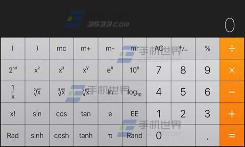 2)進入計算機界面,旋轉手機,由【豎向】轉為【橫向】。這時,計算器就可以變為【科學計算器】的界面了。(如下圖)