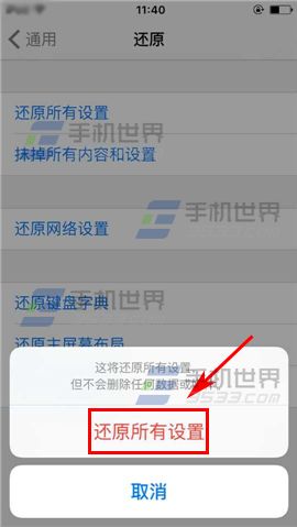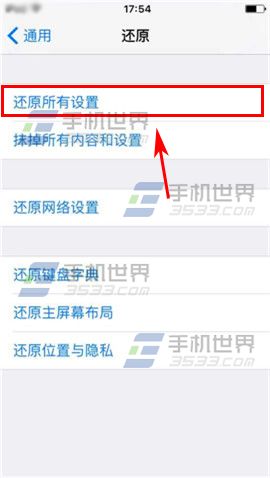 3)輸入【鎖屏密碼】,點擊【還原所有設置】即可。(PS:還原所有設置不會刪除任何數據或媒體)(如下圖)