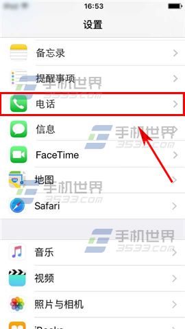 1)點選iPhone6sPlus的【設置】,然後選擇【電話】。(如下圖)