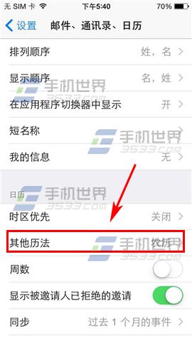 2)找到並點擊【其他歷法】,進入後選擇【農歷】即可。(如下圖)
