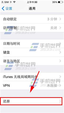 3)進入通用點擊【還原】,再點擊【還原網絡設置】,再輸入鎖屏密碼重啟,再連接wifi即可。(如下圖)