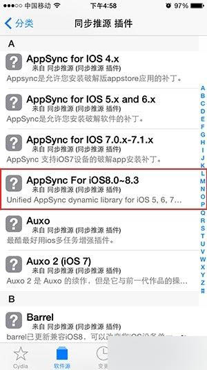 5.進入同步推源,找到Appsync for iOS8.0~8.3進行安裝