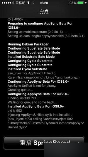 6.安裝完成後重啟springboard,至此Appsync已經安裝完成