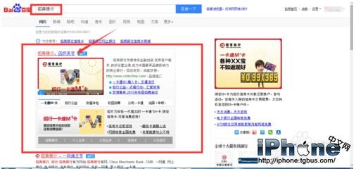 首先要想免息分期購買iphone,需要招商銀行的信用卡,確保自己有招商銀行的信用卡之後再進行如下操作,百度搜索招商銀行