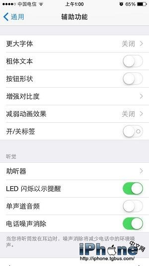 在iPhone6 Plus的桌面找到設置按鈕點擊進入【通用】選項再點擊【輔助功能】,然後在輔助功能中我們會看到有一個【LED閃爍以示提醒】選項,打開即可。