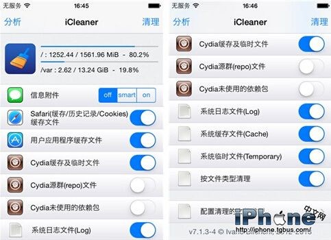 使用iCleaner清理垃圾信息與文件: