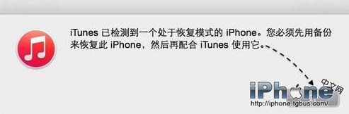 - 當看到屏幕黑屏時,請松開電源鍵,繼續按住主屏Home鍵,直到電腦端的iTunes出現檢測到一個處於恢復模式的iPhone;