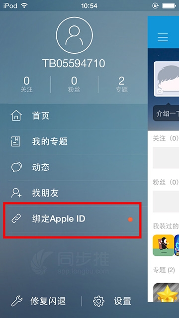 第一步:打開同步推側邊欄,點擊綁定Apple ID