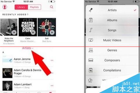 三、打開iOS設備上的“音樂”應用,選擇“我的音樂”,點擊“藝術家”欄目就可以看到“家庭共享”功能了。