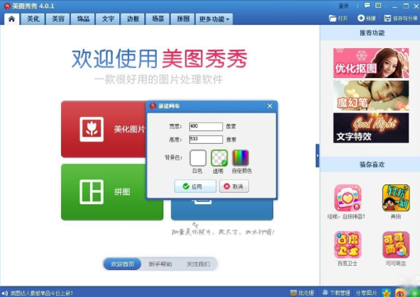 1、打開美圖秀秀, 新建一個透明背景圖層 尺寸是: 400*533 像素。