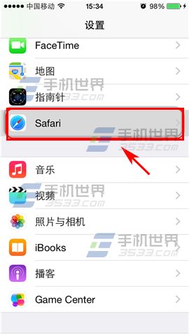 1)點擊【設置】下滑找到【Safari】並點擊。(如下圖)