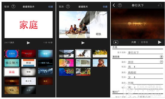 除了濾鏡,你也可以在視頻中添加字幕,iMovie對字幕的彈出效果進行了預設,你可以選擇合適的加入。但遺憾的是手機未越獄,字體只能選擇系統自帶的。
