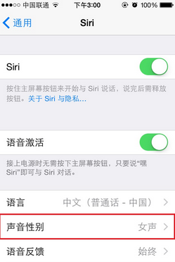 3、iOS 8版本中,會有“聲音性別”的選項。