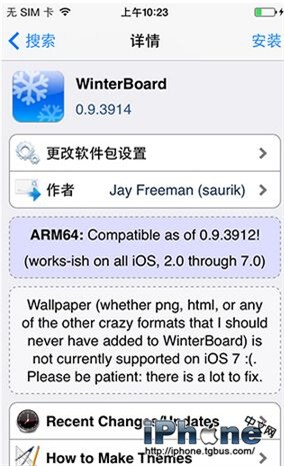 越獄後,打開手機上的cydia,在搜索欄上搜索“Winterboard”(建議使用Bigboss源安裝),首個就是,安裝即可: