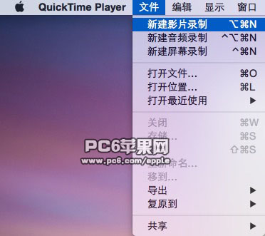 2、然後在右上角點擊“文件”>新影片錄制(New Movie Recording)。