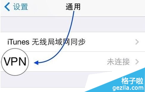 3、在通用列表的底部找到 VPN 一欄,點擊進入,如圖所示